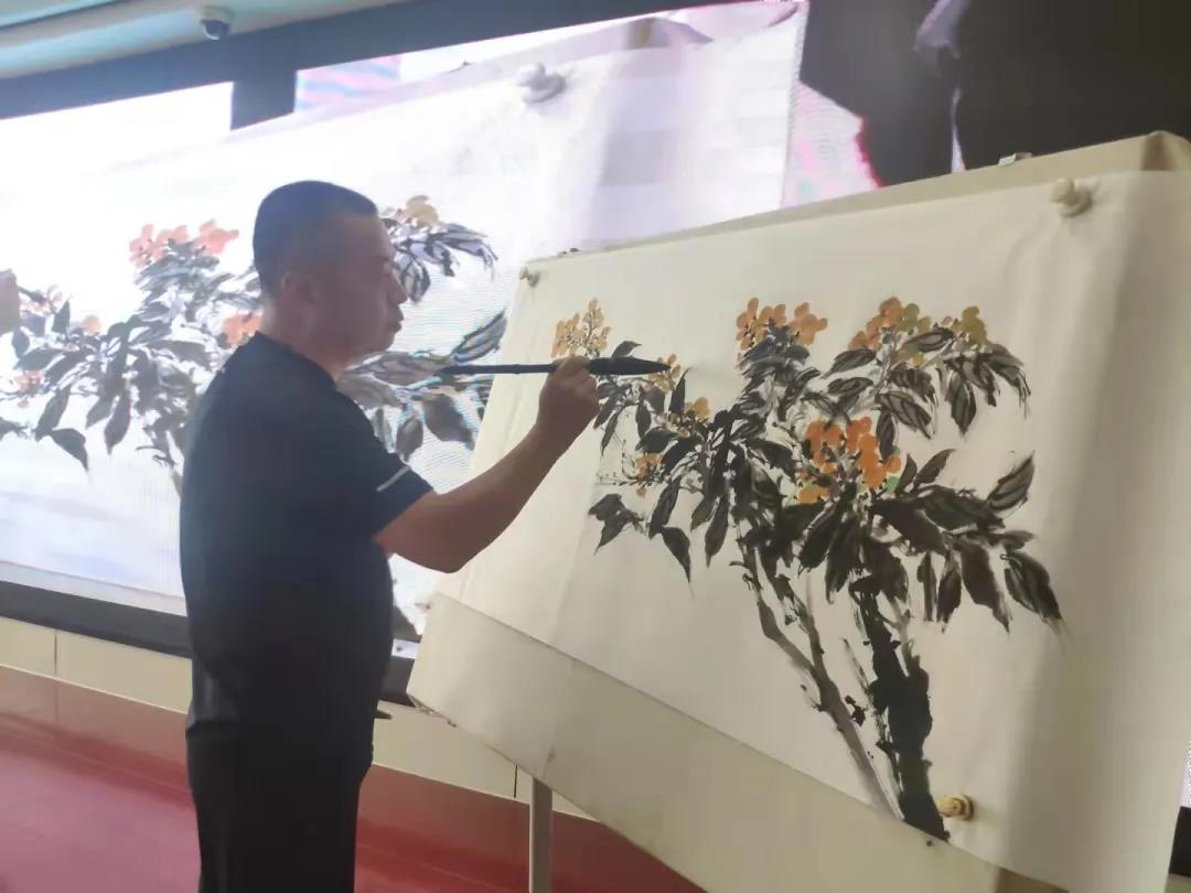 马健从国画的发展历史及绘画要旨“六法”等方面介绍了相关知识,让老师们对国画理论有了基础的认识和了解。并在现场示范蔬果画技法,对每位参训教师的作品进行了指导。