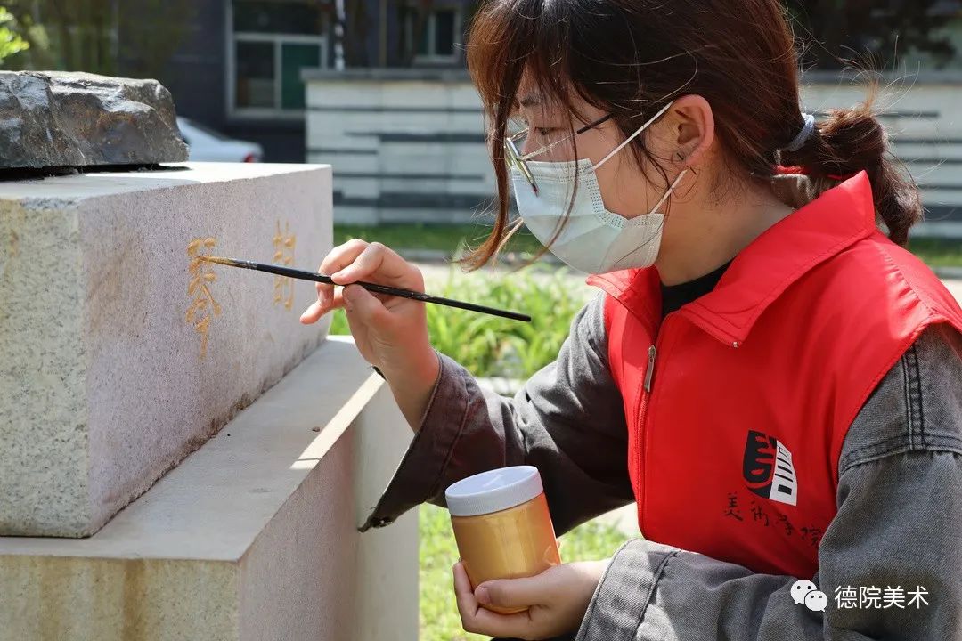 为建设整洁美丽的校园,增强校园文化氛围,提高同学们爱护校园意识。2022年4月23日伟德国际victor1946党委组织青年志愿者服务部开展了“以青春之手,为石刻补色”的活动。