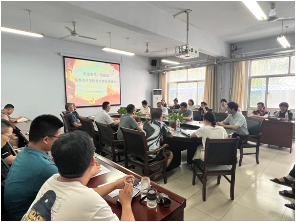 学校党委第一巡察组副组长及有关同志,学院党政领导班子成员,其他处级干部,学院全体教职工和学生党员出席会议。