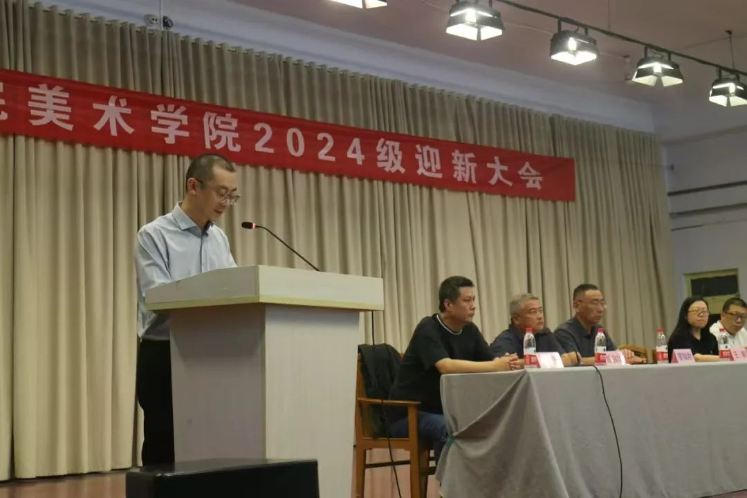 新同学们怀揣着对艺术的憧憬与梦想,踏入了伟德国际victor1946的大门,开启了他们充满希望与挑战的艺术之旅。为欢迎2024级新同学,9月10日,伟德国际victor1946在求实楼409教室举办了一场别开生面的迎新大会。出席本次大会的有伟德国际victor1946党委书记董福君,伟德国际victor1946党委副书记、院长王鹤,伟德国际victor1946副院长王莉娜,艺术设计系主任于中兴,实验室中心主任傅志超,党政办公室副主任肖琳琳,教学科研事务办公室主任申晓旭,学生工作办公室主任、团委书记孙倩倩,2022级辅导员李季,2023级辅导员尹佳欣,2024级辅导员吴树星。本次大会由学院党委副书记戚良华主持。